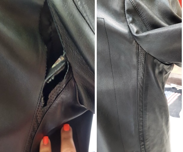 Ремонт разрывов. Восстановление и окрашивание кожи, Замена молнии. Замена подкладки.